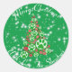 Green Animal Paw Silhouette Christmas Tree Green Classic Round Sticker