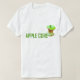Green apple core as a main object of an apparel decoration. Text is added which relates to the core, for example: Physics of core, core business, multy core processing, apple core etc.