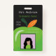 A black vertical badge for any school staff member featuring part of a green apple . Personalise it with the employee's photo , name , job title , school name and the establishment's address . A small white rectangle is provided on the back for the teacher's signature or a bar code . This design is also available in white and light green .