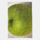 Closeup view of a single green apple. The apple is wet and heavily covered with drops of clean water. Textured photography