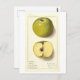 This postcard is a reproduction of a vintage botanical illustration of a green apple.