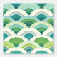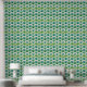 Bold colourful green arch fish scale geometric pattern several shades of green, cream and turqyoise teal blue. Calming nature inspired colour pallette perfect for biophilic design. Retro yet still modern this bold pattern is perfect for accent walls. Peel and stick wallpaper lets you upgrade your small space home decor and personalise your rental with your unique design aesthetic. No more boring white boxes!