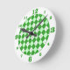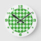 Green Argyle Plaid Round Clock
