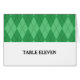 Classic and elegant Argyle Wedding Table Number Card with a simple green diamond argyle pattern background. Easy to customise with your wedding details. For more customisation options, click on the Customise It button.