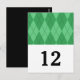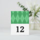 Classic and elegant Argyle Wedding Table Number Postcard with a simple green diamond argyle pattern background. Easy to customise with your wedding details. For more customisation options, click on the Customise It button.