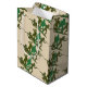 Patterned gift bag that's as much fun for adults as it is for kids, features the iconic plastic green army men in 4 different action stances and grouped together to create a repeating pattern on a beige background..