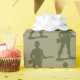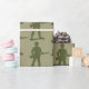 Vintage green army soldiers with bayonet style weapons create a pattern on a camouflage coloured background.