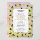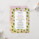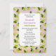 A birthday party invitation with a green avocado pattern created with watercolor paint. This design has a repeating pattern with one pear-shaped avocado with stem and leaves intact and the other avocado is cut in half. Sitting on a bed of bright green leaves. A white frame with rounded corners is layered over top and holds your party information. The background is a vintage style texture in pink and yellow.