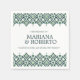 Elegant and sophisticated, this design features a border decoration of spanish tile or azulejos in mediterranean inspired watercolor palette of shades of forest green, light green over a white background.