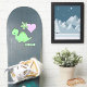 A cute little green baby dinosaur is the feature sticker in this adorable set. Along with the dinosaur is a green flower and a pink heart. Your child's name is in matching green on a separate sticker.
