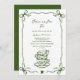 green baby shower tea bow hand drawn invitation