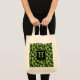 Green Basil Leaf Herb Pattern Botanical Reusable Tote Bag. Green basil leaves in a pattern on a black background. Add your monogram and name.