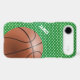 Custom basketball fan iPod touch case, with graphics of a green sports jersey pattern background. Graphics of a basket ball decorates the bottom right corner of the case and custom white text, on the left side, is ready to personalise. Great case for the sports fan or basketball player.