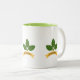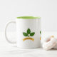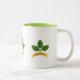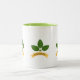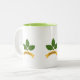 Modern beautiful green bay leaves and golden ribbon on white Mug. Text can be personalised.