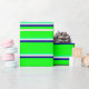 This wrapping paper design features a pattern of stripes having colours like green, beige, dark blue, and lime. Wrapping paper like this might be used when wrapping presents or gifts being given in celebration of a birthday, a wedding, an anniversary, or some other event.