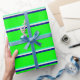 Green, Beige, Dark Blue, and Lime Coloured Pattern Wrapping Paper