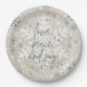 Green Beige Snowflakes Love Peace Joy Holiday Paper Plate