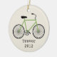 An ornament featuring an illustration of a green bicycle. Personalise with your name under bike.