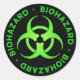 Green and black biohazard symbol sticker with warning text.