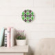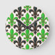 Green Black Baroque Fleur-de-lis Pattern Design Round Clock