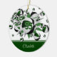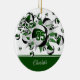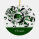This cool girl's basketball ornament features an "explosion" of varied size basketballs that have alternating green, black and white panels, and grey and green star shapes, upon which you can personalise her jersey number - the green star has a tiny pattern of white polka dots - customise the athlete's name on the front & commemorative year on the back on a green colour strip at the bottom edge of the ornament - katz_d_zynes