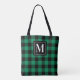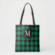Green Black Buffalo Plaid Monogram Initial Tote Bag