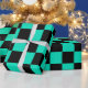 Green and Black Check Chequered Geometric Squares Pattern Design
