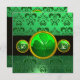 GREEN BLACK DAMASK ,SHAMROCK MONOGRAM INVITATION