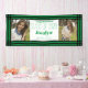 Hang this Green Black Geometric Two Photos Graduation Banner to celebrate your graduate. Personalise with two photos, name, school, and class year. This class of 2024 school colours banner features feminine font and a decorative black and green border.