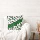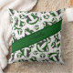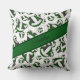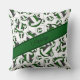 This cute volleyball team colours throw pillow for girls features a pattern of varied size stylised green, black and white volleyballs turned every which way overlying a volleyball net detail graphic - the volleyballs' green and black panels are blended with an artsy, girly floral pattern - personalise her name in a sophisticated handwritten font on a bold, angled, full width green colour strip - background and name strip colours are customisable - by katz_d_zynes