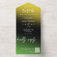 Green Black & Gold Jamaica Ombre QR Code Wedding All In One Invitation