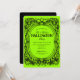 A Halloween Party Invitation with a gothic feel. Features a vintage frame in black, a script font on a green background. Customise with your own details to spread the word about your spooky event! Please browse the Halloween Party Invitations Collection for more designs.