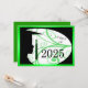 A silhouette of a young man in his cap and gown. Floral designs in the background. The back has a green background with black lettering for the graduation party invitations.