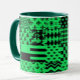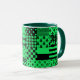 Green and Black Mixed Patterns Patchwork Design of 16 Different Design illustration of Fleur-de-lis, crowns, hearts, Polka Dots, Greek key, irregular Abstract, Houndstooth, Trees, Harlequin, Stripes, Check, umbrella, anchor, Chevron, blob and flower floral illustration Designs.