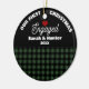 Commemorate your engagement with this charming rustic Christmas ornament from Plaid Perfection. Designed with a split background—classic green and black buffalo plaid on the bottom and sleek black on top—this festive ornament features the phrase *Our First Christmas Engaged* curved along the top. Personalise with the couple’s names and year to create a keepsake that celebrates love and new beginnings. Perfect as a gift for engaged couples or as a special addition to your own tree, this round ornament is a timeless way to mark this milestone and treasure the memory for years to come.