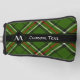Green, black, red and white tartan design. Seamless pattern. Custom text and monogram.