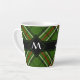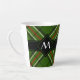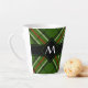 Green, black, red and white tartan design. Seamless pattern. Custom text and monogram.