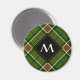 Green, black, red and white tartan design. Seamless pattern. Custom monogram.