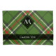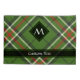 Green, black, red and white tartan design. Seamless pattern. Custom text and monogram.