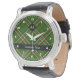 Green, black, red and white tartan design. Seamless pattern. Custom text and monogram.
