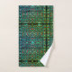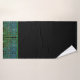 Accent your black theme bathroom with this stained glass pattern bath towel set. This towel set features the colours of green and black with touches of aqua blue. A unique pattern that was created from a photograph of stained glass church window. This towel will be appreciated by both men and women. for a housewarming gift or another occasion.