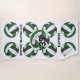 This volleyball team spirit beach towel features a pattern of green, black and white stylised volleyballs arranged in a mirrored pattern with customisable text between the volleyballs, currently team name & mascot name - the athlete's name and jersey number can be personalised, as well as the white background colour and black text - by katz_d_zynes