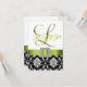 Green Black White Damask Initial L Wedding RSVP Invitation