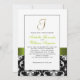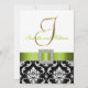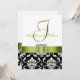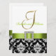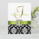 Sophisticated elegance is conveyed by this beautiful wedding invitation design. A black and white floral damask pattern serves as a background for a photo effect of the Metallic Gold Initial "I" and a lime green satin ribbon and diamond brooch ALL PRINTED on FLAT CARD Wedding Invitations. A perfect way to invite your guests to your wedding. Contemporary, yet classic damask pattern with a design which allows you to personalise the front with your names and the back is free to add your customised wedding invitation text. Wedding Invitation is set for monogram initial "I". For other letters and colours please contact designer at luxuryweddinginvitations@gmail.com. Layout Design by Elke Clarke©. Graphics licensed. Also, choose from a variety of fonts and beautiful papers to make your wedding invitations PERFECT!