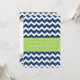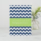 Modern and colourful dark navy blue and bright lime green chevron zigzags stripes baptism invitation for boy.