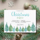 They are decorated with a watercolor of simple Christmas trees in shades of turquoise and green.