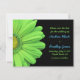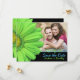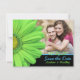 Lime green gerbera daisy, bright blue accent photo wedding save the date announcement card. The colours on this unique gerbera daisy flower wedding save the date card are lime green, bright blue, and black. It would be great for a wedding with a gerbera daisy theme.