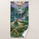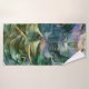 Green blue gold ink abstract bath towel. Modern and contemporary design.
