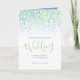 Double-sided modern calligraphy white and green blue dab modern art wedding program. Edit this wedding program with your own name, dates, ceremony wording, wedding party attendants and thanks. Simple yet elegant program simply replace sample text with your own wedding information details. Original art and design by www.mylittleedenweddings.com