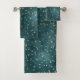 Green blue night sky teal gold star pattern bath towel set